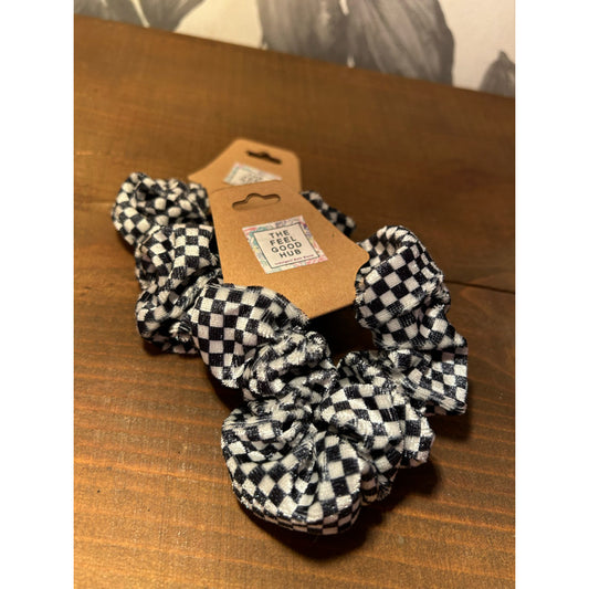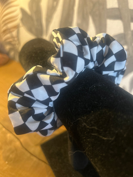 Black & White Chequered Scrunchie