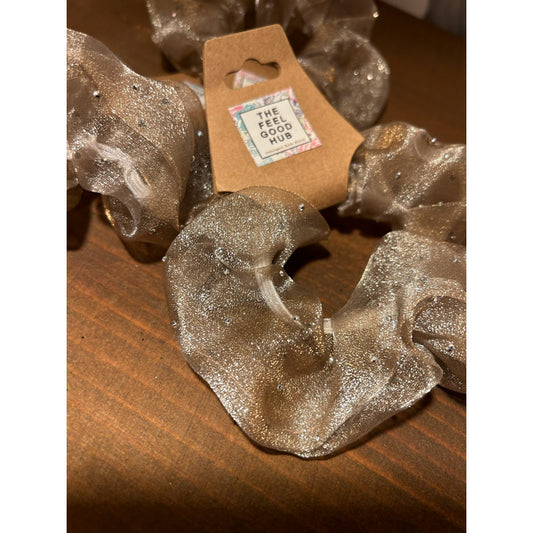 Beige Mesh & Diamanté Scrunchie