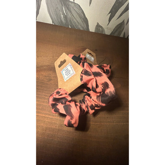 Black & Coral Zebra Print Scrunchie